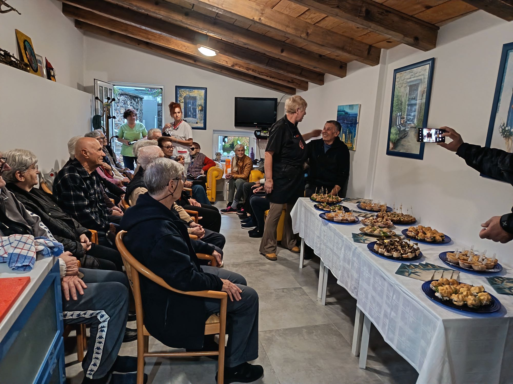 Svečani stol sa slatkim i slanim delicijama oduševio je stanare Doma. Svi su mogli kušati kolač s limunom i karamelizirane jabuke, profiterole s kremom od sira i tartufate, kuglice od riže s gljivama, paštetu od tune, kao i paštetu od pileće jetrice s jabukom i marmeladu od kapule, a osim na kruhu, namazi su bili ponuđeni i na krekerima.